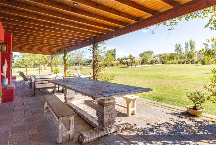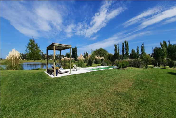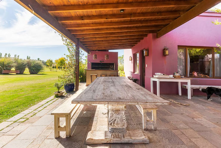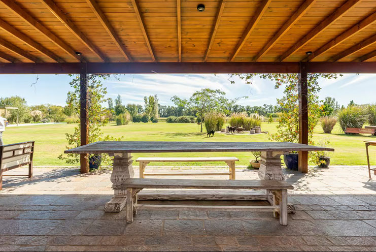 – Quincho y Espacios para Compartir: Gran galería exterior con parrilla, horno de barro, mesa larga y living al aire libre con vistas a la laguna propia. El lugar ideal para comidas al aire libre, atardeceres tranquilos o encuentros festivos.