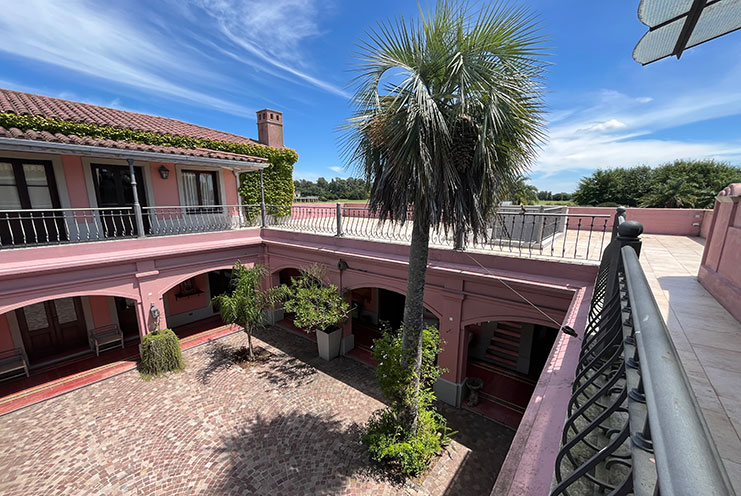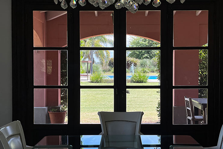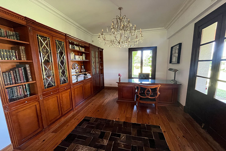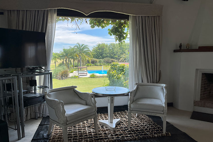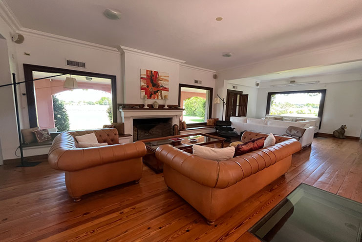 – Arquitectura y Ambientes Sociales: Patio colonial central que aporta luz y calma. Comedor con vistas a cancha de polo y piscina, ideal para banquetes. Amplia sala con chimenea y home office equipado. Sala de cine con barra en el subsuelo.