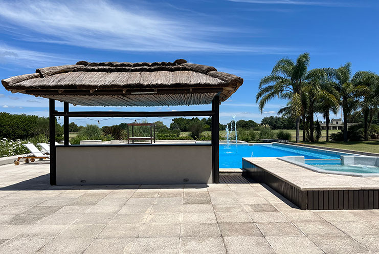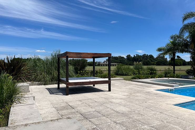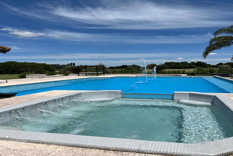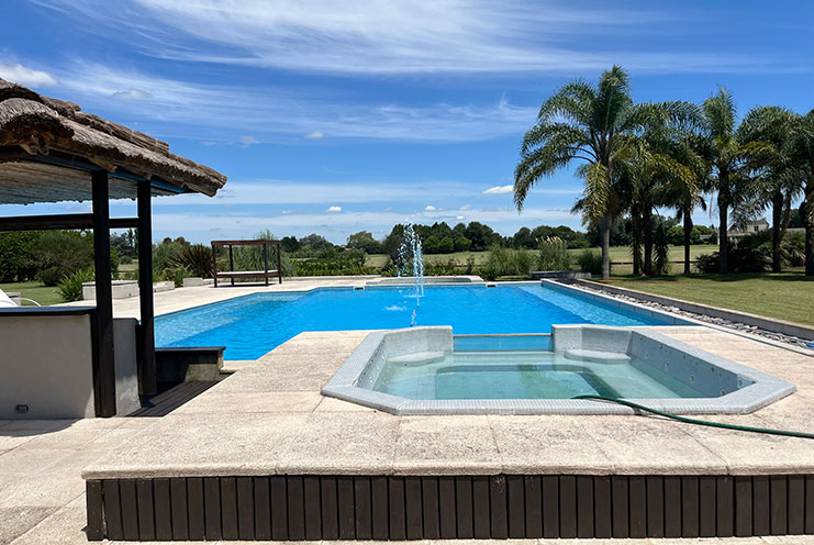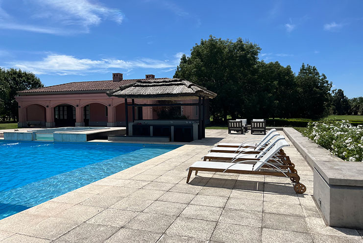 – Ocio y Relax: Piscina de 18 × 9 m con jacuzzi y camastros, un oasis de tranquilidad. Quincho adicional y área de living exterior, perfectos para disfrutar del paisaje y la brisa del campo.